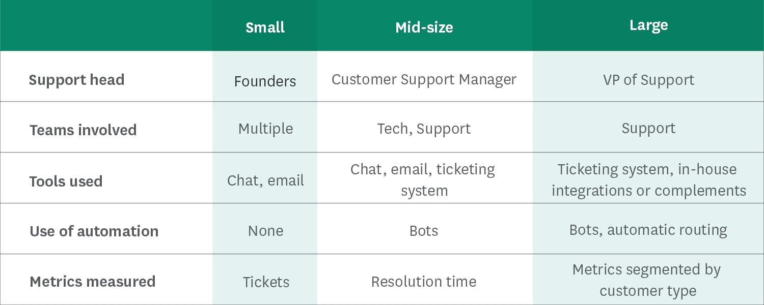 Does the support strategy of a startup change as it grows?